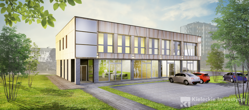 Niewielki, dwukondygnacyjny budynek usługowo-biurowy stanął w sąsiedztwie Biedronki i pawilonów spółdzielni mieszkaniowej. Elewacja obiektu została wykonana w technologii lekko-mokrej i z paneli HPL. Budynek posiada windę osobową, a jego powierzchnia użytkowa wynosi 733,98 m2.